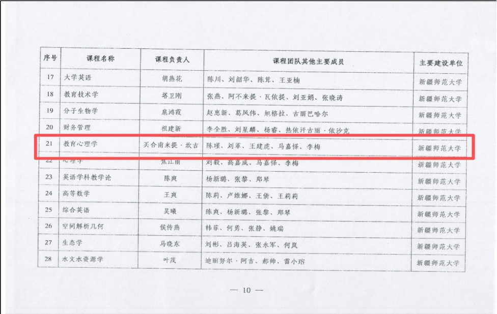 基地成员买合甫来提·坎吉教授《教育心理学》荣获自治区级一流课程