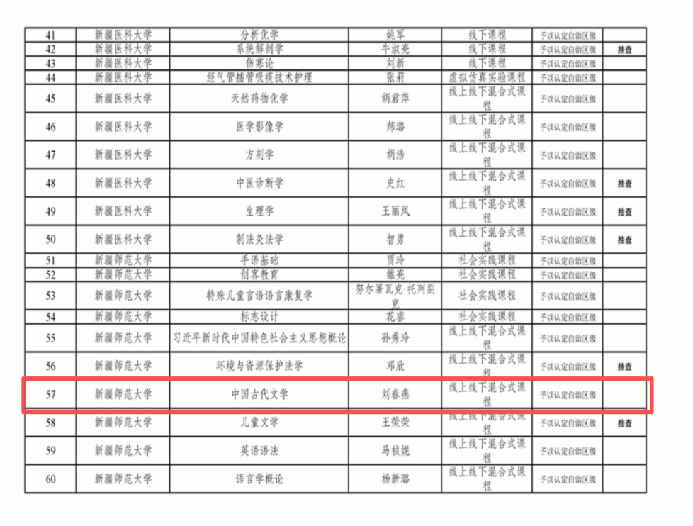 基地成员刘春燕副教授《中国古代文学》荣获自治区一流课程。
