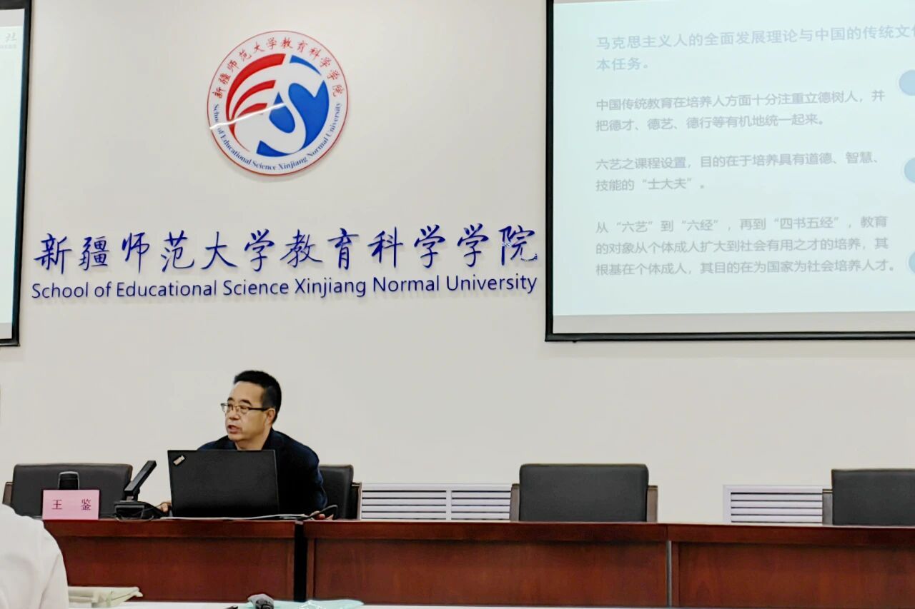 “天山树人”讲堂第二十九讲在文润楼天山树人讲堂举办,杭州师范大学教授王鉴作了题为《我国基础教育课程改革的理论逻辑与实践路径》的学术讲座。学院领导班子成员,教师、硕博研究生代表聆听讲座,讲座由学院副院长、北京师范大学援疆干部马秀麟主持。