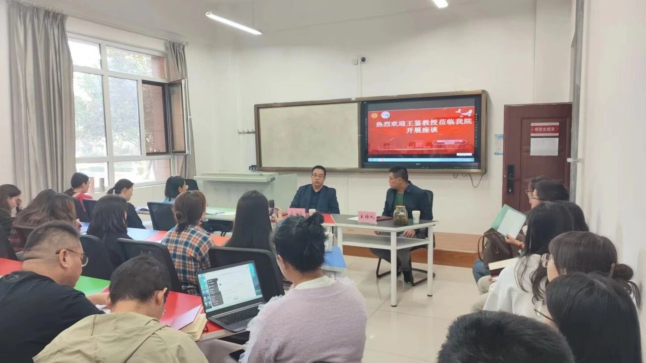 同日,王鉴还同我院硕博研究生进行了座谈,就硕博研究生成长发展进行了探讨和指导。座谈中,围绕教师培训、国家开放大学转型中组织变革、技术生态下网络培训对教师专业发展有效性、“双减”政策、中小学的劳动教育课程等展开座谈。就论文选题的困境,王鉴进行了案例讲解,并指出,要结合专业方向选题,要有明确的问题意识,将问题的理论意识与实践行动相结合,在实践中去寻找问题。