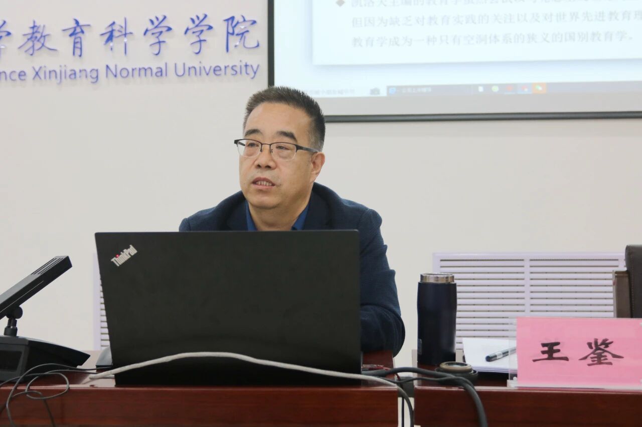 5月6日上午,天山树人讲堂第四十三讲在文润楼天山树人讲堂举办,本讲邀请杭州师范大学博士生导师王鉴教授作了题为《论中国教育学自主知识体系建构的根本问题》的讲座。讲座开始前,教育科学学院院长程良宏教授致辞,副院长马秀麟主持讲座,近200人聆听了讲座。
