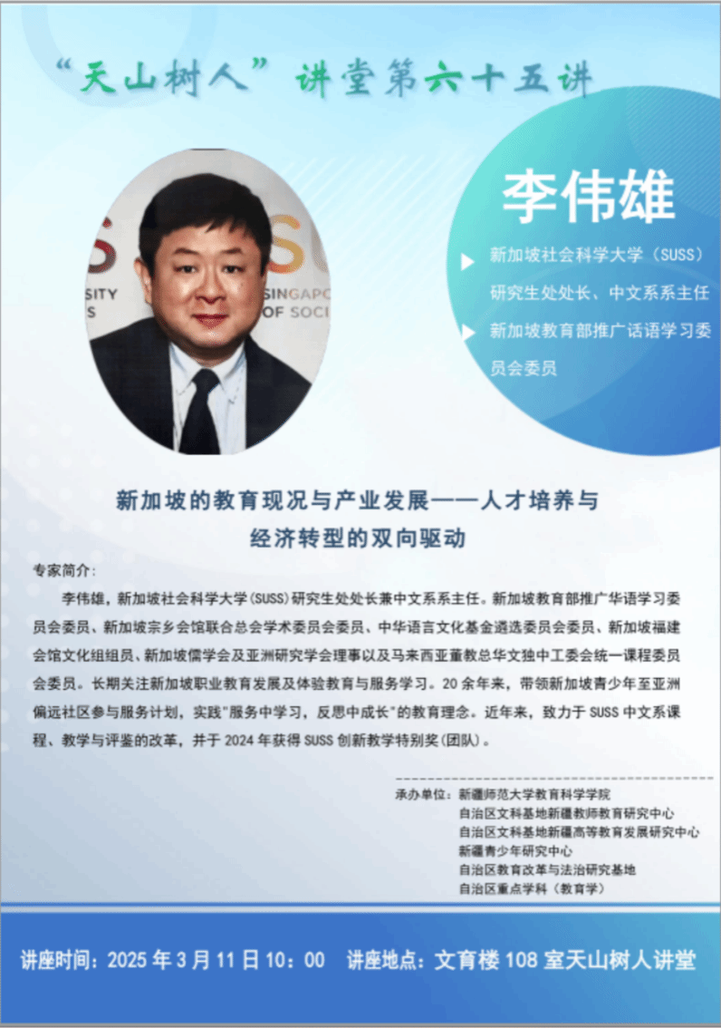 李伟雄以新加坡的教育状况与产业发展——人才培养与经济转型的双向驱动为题与硌各位同学和教师进行了交流分享。