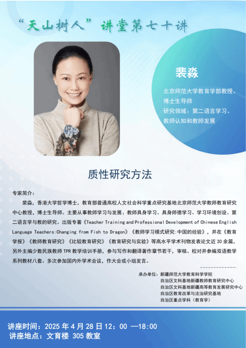上一条:李伟俊教授做客“天山树人”讲堂第七十七讲